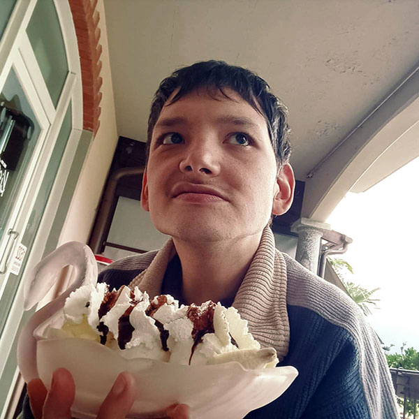 “Ciao mi chiamo Jacopo, ho 38 anni, il mio papà si chiama Decio, la mia mamma Elena, mio fratello Tomas: siamo la famiglia Tai. Non riesco ad esprimere con le parole le mie emozioni come felicità, tristezza, rabbia, disagio. Le mie parole vanno ascoltate con il cuore, i miei abbracci e i miei sorrisi trasmettono i miei pensieri.