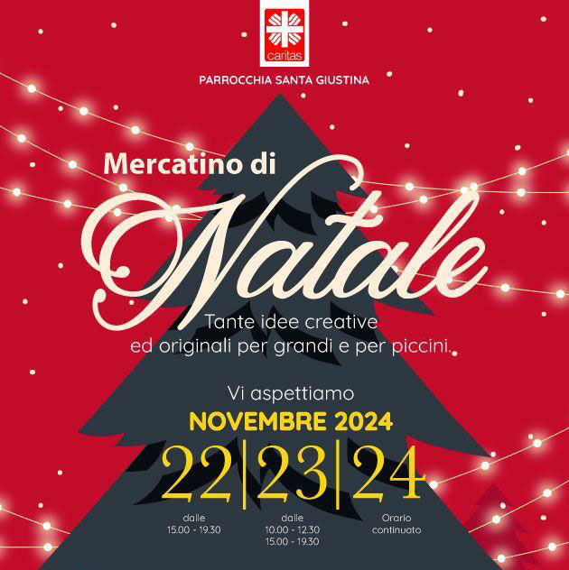 Siamo entusiasti di annunciare la nostra partecipazione al Mercatino di Natale organizzato dalla Parrocchia Santa Giustina, che si terrà nei giorni 22, 23 e 24 novembre 2024 presso il Salone Sant’Agnese